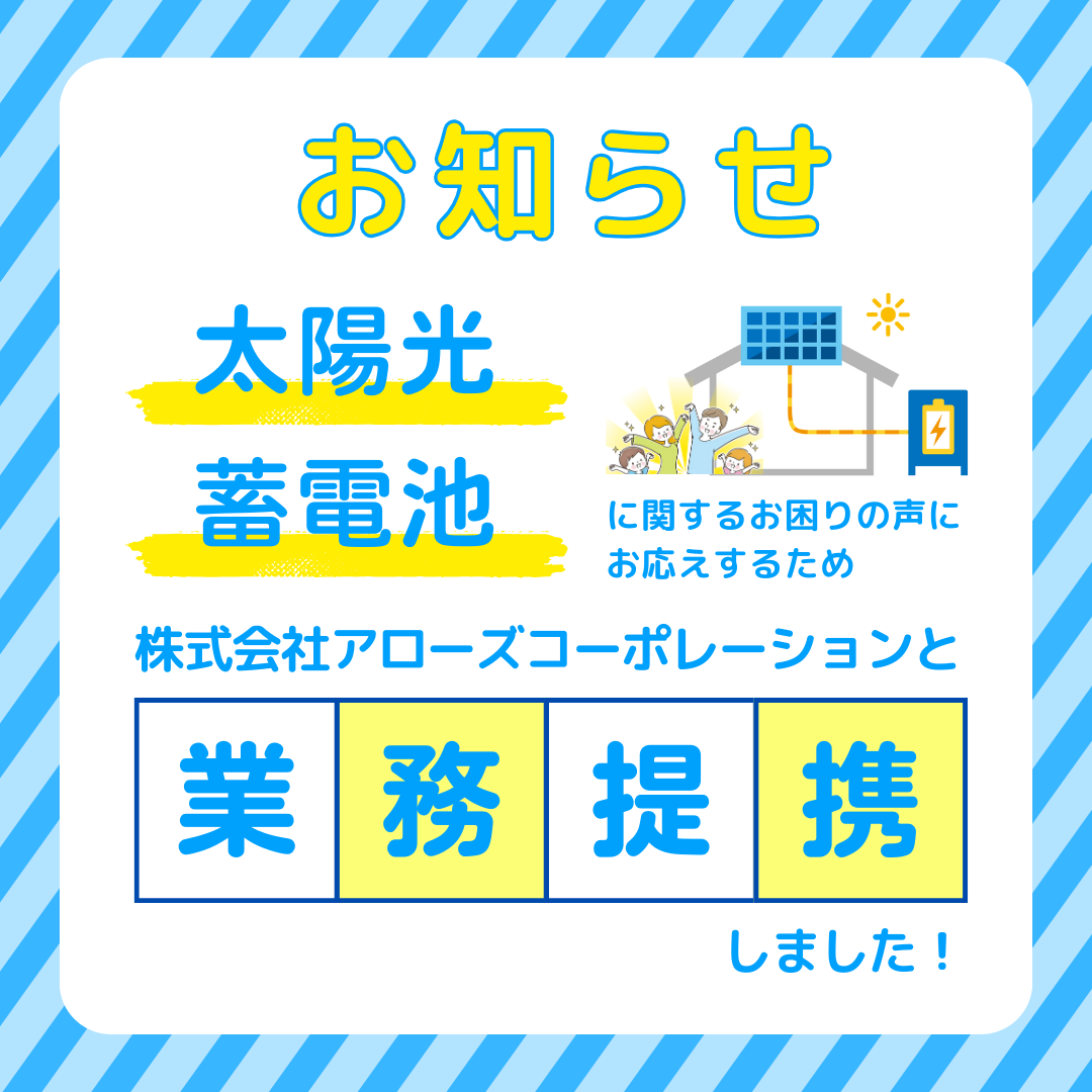 太陽光パネル・蓄電池に関する業務提携のお知らせ