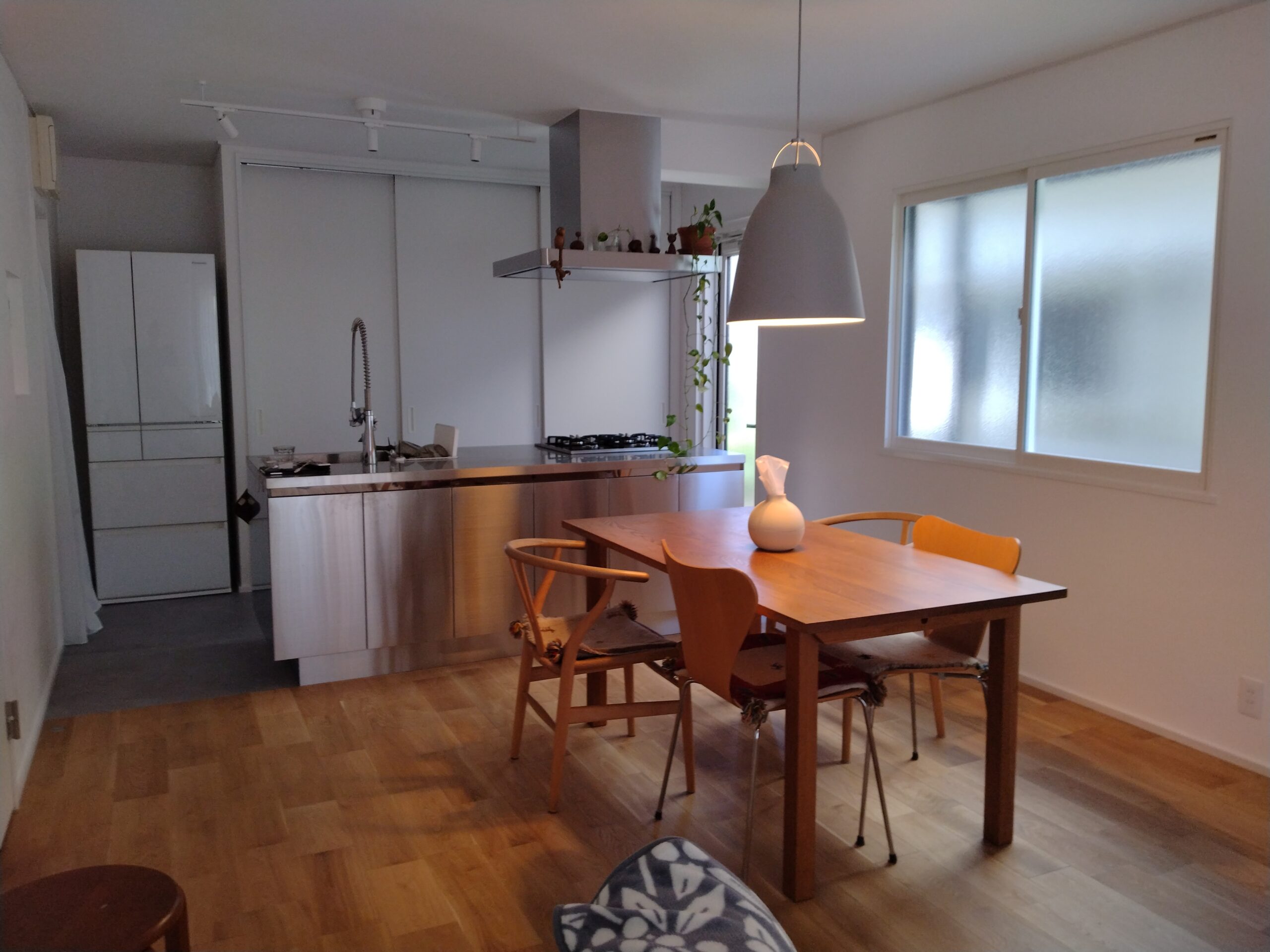 キッチンとダイニングの壁を取ってアイランドタイプのキッチンにすることで、開放感のある空間に✨